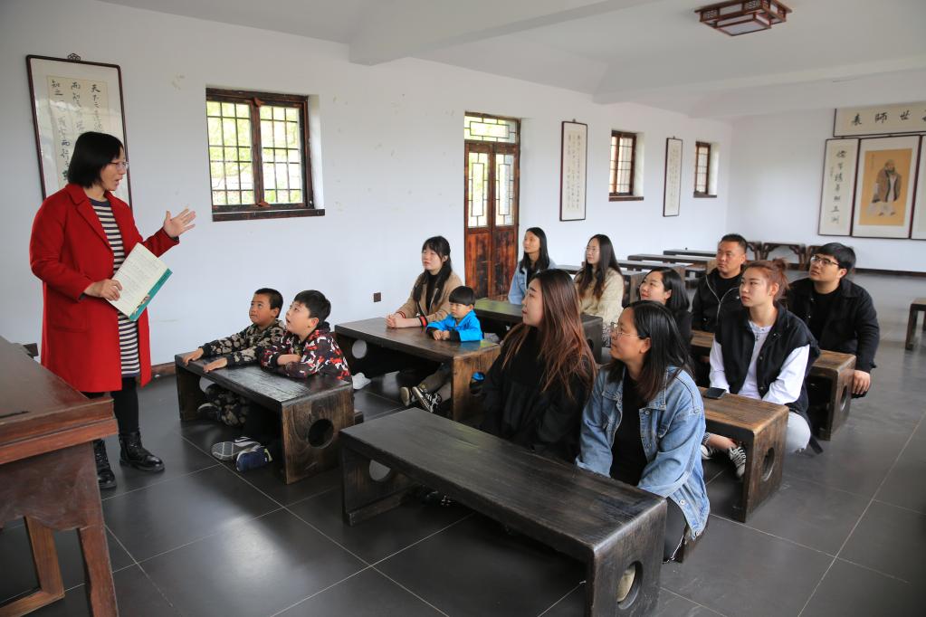图为在唐山市迁西县马家沟村,村民和游客一起在上国学课。(新华社记者高博摄)