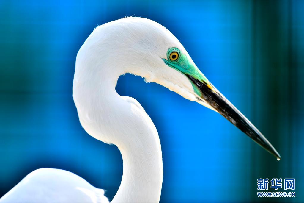 这是5月13日在山东黄河三角洲国家级自然保护区里拍摄的大白鹭。新华社记者 郭绪雷摄