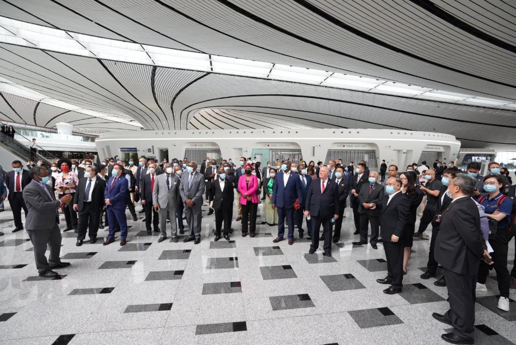 驻华使节在北京大兴国际机场参观。