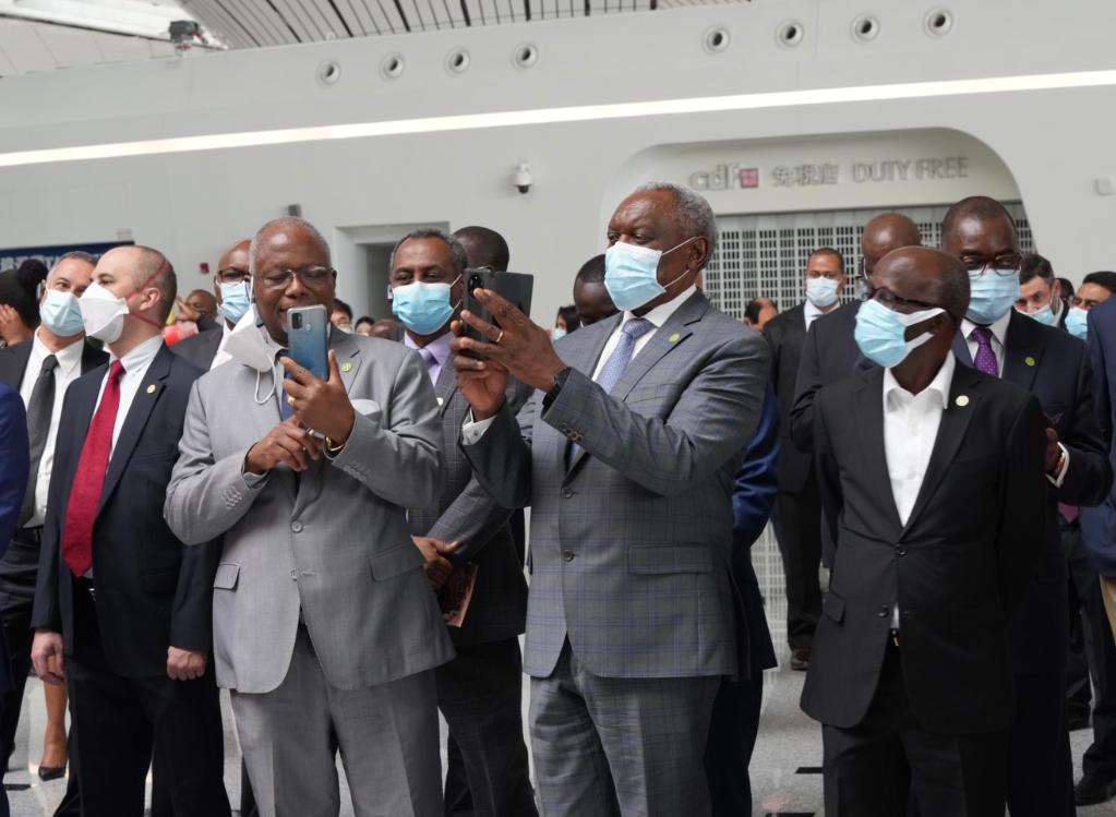 驻华使节在北京大兴国际机场拍照留念。