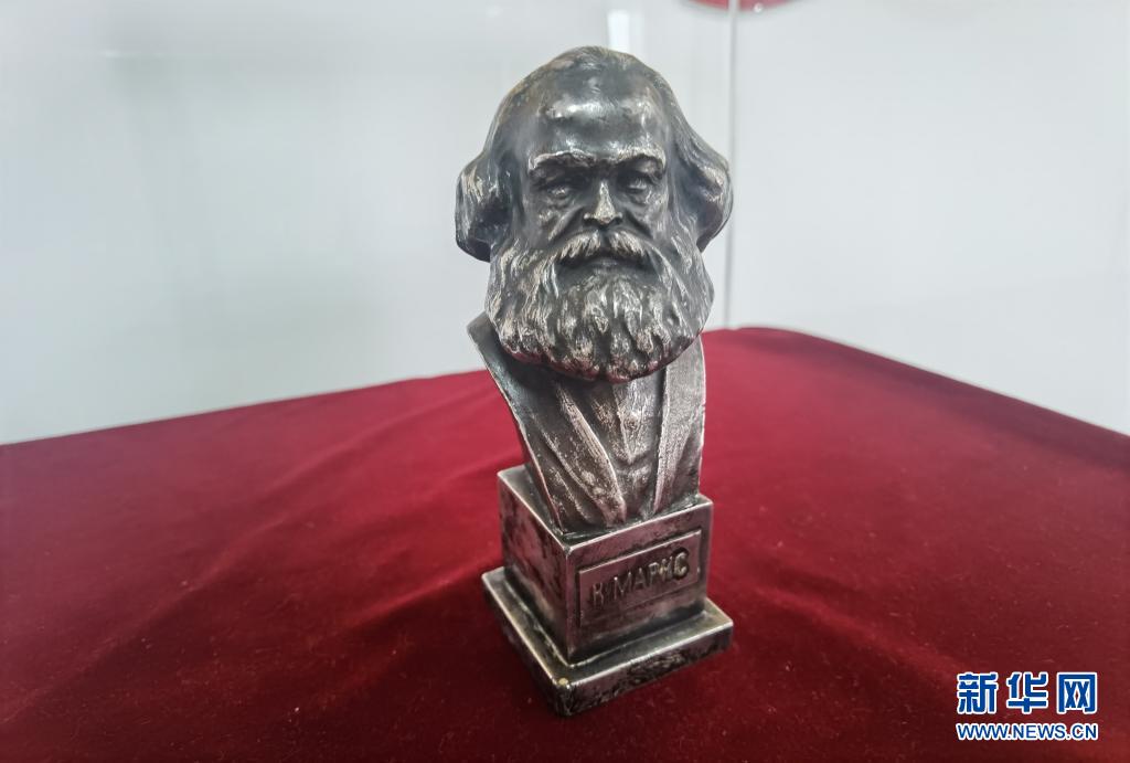 马克思银像的特写照片。新华社记者 张紫赟 摄