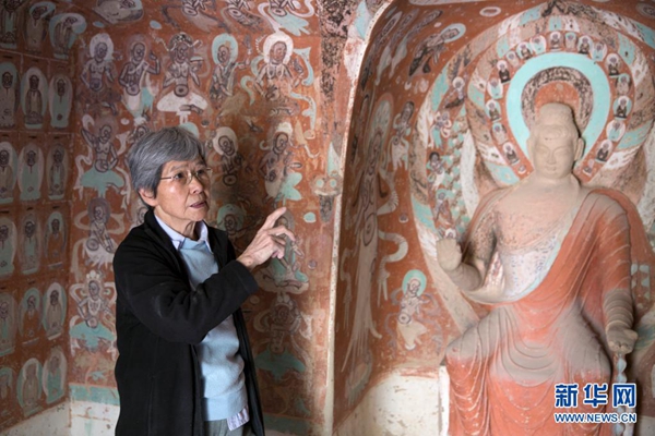 樊锦诗在敦煌莫高窟(2015年9月29日摄)。新华社发(孙志军 摄)