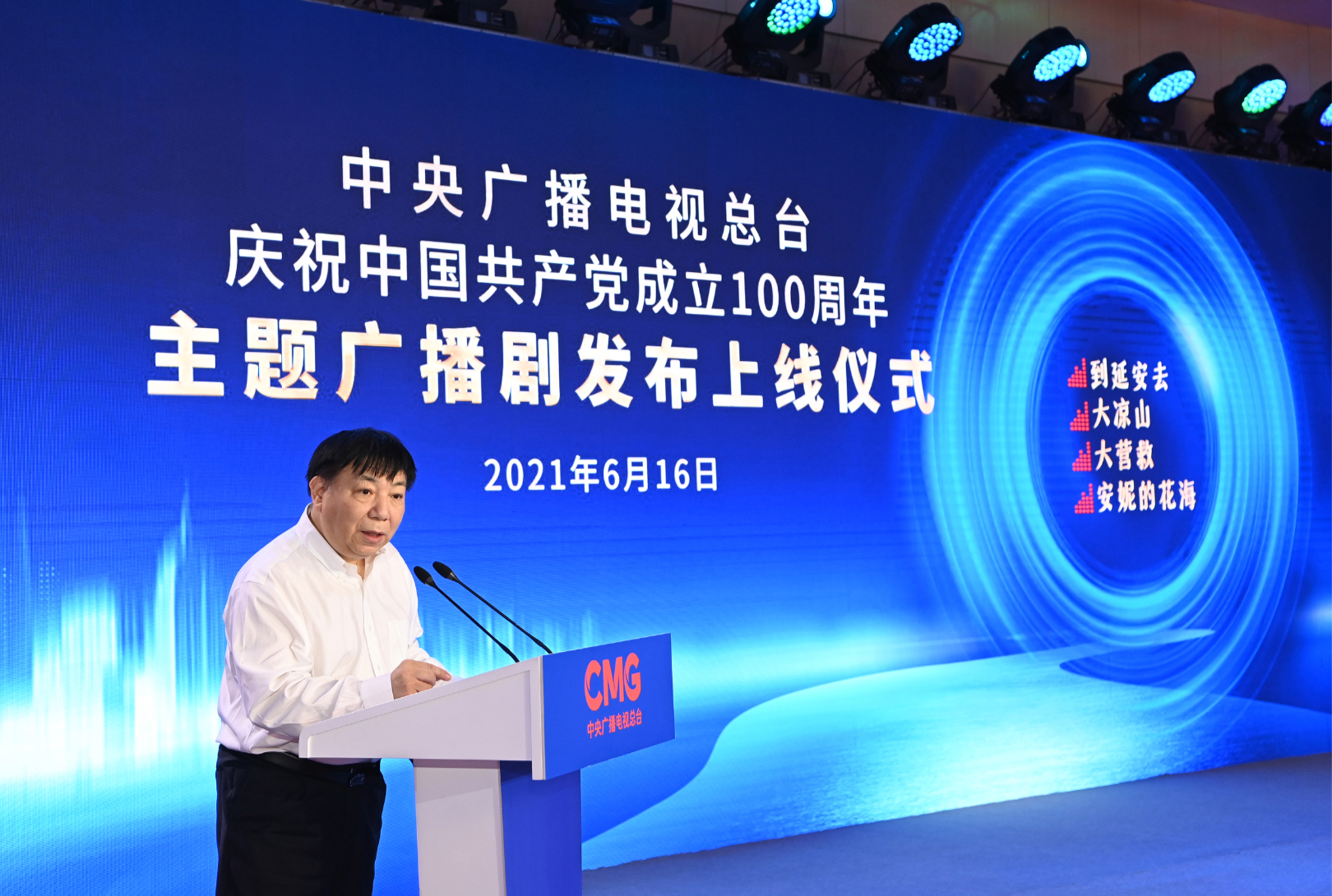 由中央广播电视总台策划制作的“庆祝中国共产党成立100周年主题广播剧”《到延安去》《大凉山》《大营救》《安妮的花海》,6月16日在北京首发上线。中宣部副部长、中央广播电视总台台长兼总编辑慎海雄出席并致辞。