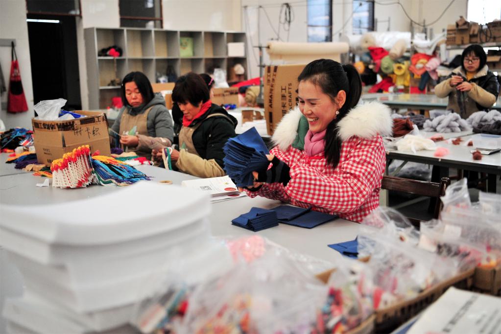 2012年,村里移民谢蓉组建了宜昌绣女工艺品专业合作社,初期产品没有特色,销量并不好。2014年,谢蓉和同村几位妇女受邀到上海市静安区社会组织联合会参加培训。