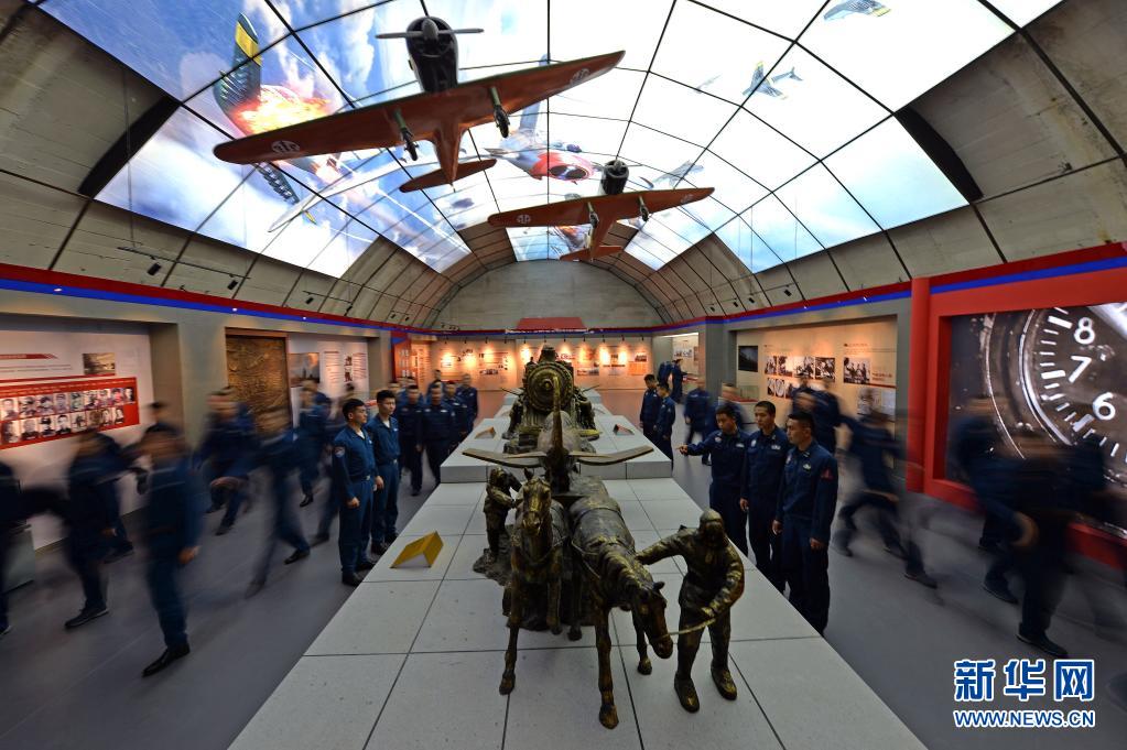 6月18日,在空军举行的专题党日活动中,官兵参观“东北老航校”旧址展陈中心。新华社发(余红春 摄)