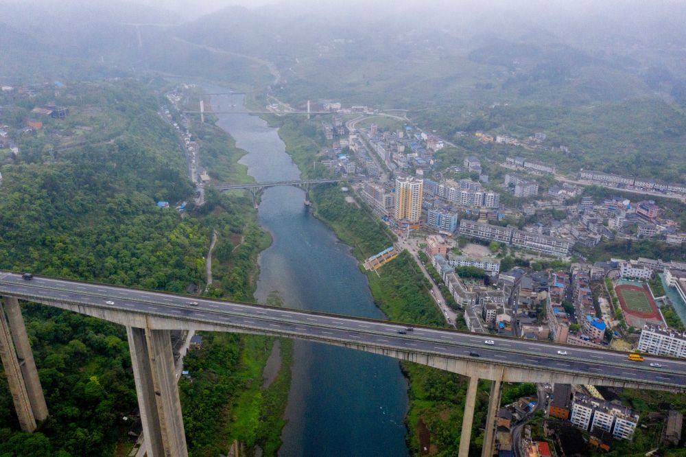 贵州省遵义市乌江镇一景(4月19日摄,无人机照片)。新华社记者 欧东衢 摄