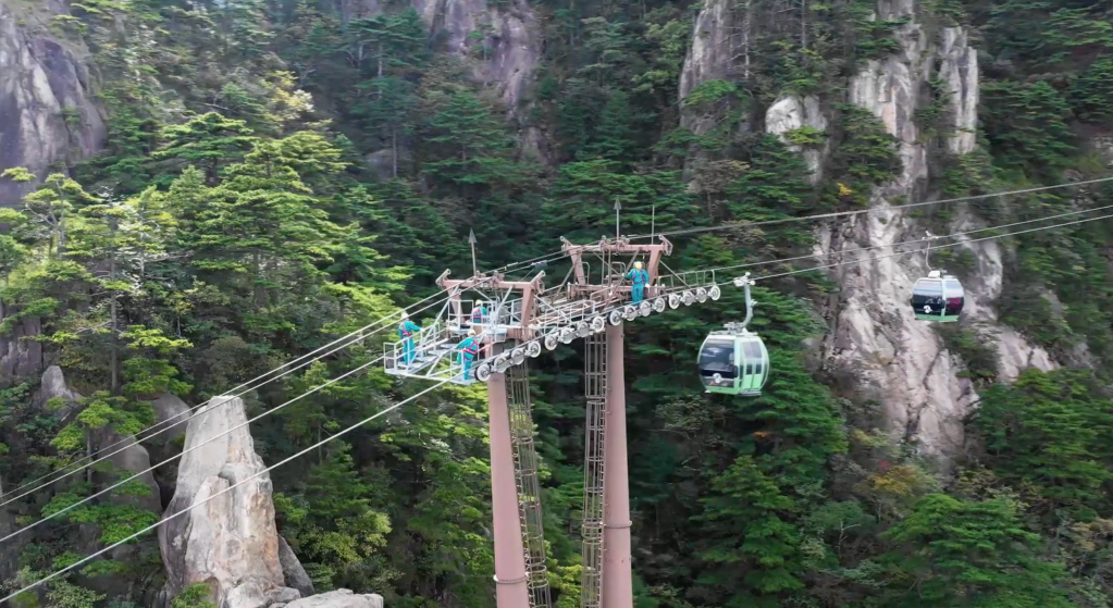 姚文华和团队在检修索道。新华社记者 屈彦 摄