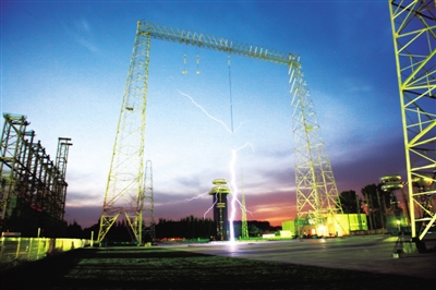 2007年10月9日,特高压直流试验基地7200千伏冲击电压发生器输出电压创世界纪录。国家电网供图