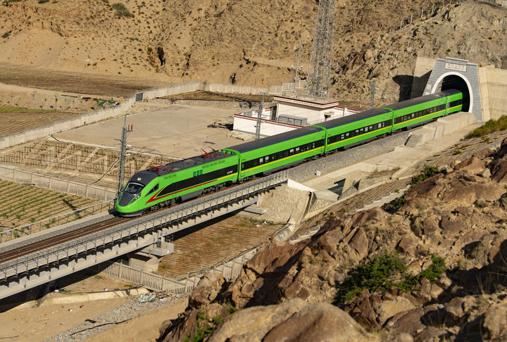 试运行的复兴号列车驶出拉林铁路的嘎拉山隧道(6月16日摄)。新华社记者 普布扎西 摄
