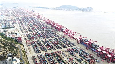 ▲上海自贸区临港新片区洋山深水港。记者 丁汀 摄