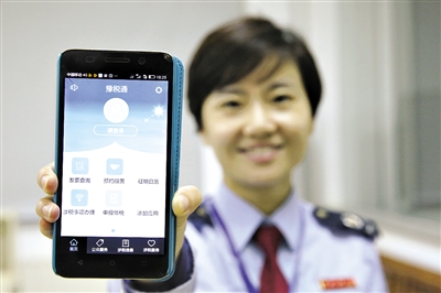 ▲河南洛阳税务工作人员展示办税APP。记者 殷刚 摄