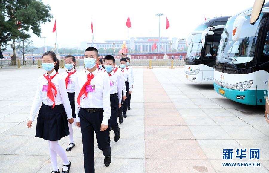6月29日上午10时,“七一勋章”颁授仪式将在人民大会堂隆重举行。这是参加颁授仪式的少先队员。新华网 陈杰 摄