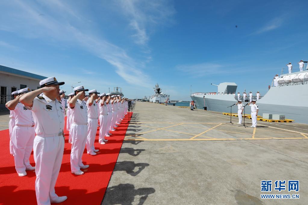 6月29日,中国海军第37批护航编队圆满完成亚丁湾、索马里海域护航任务,返回湛江某军港。这是欢迎仪式现场。新华社发(江晓卫 摄)