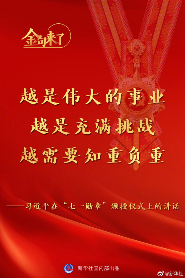 29日,庆祝中国共产党成立100周年“七一勋章”颁授仪式隆重举行。习近平总书记发表重要讲话,一起来看讲话金句↓↓