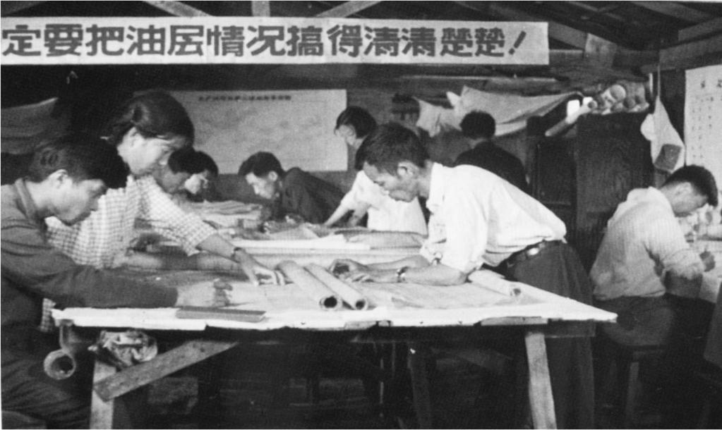 大庆油田开发初期,石油科技工作者在工作中。新华社发