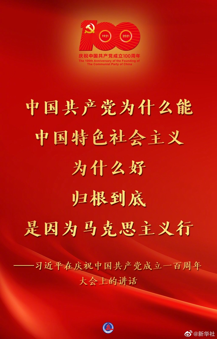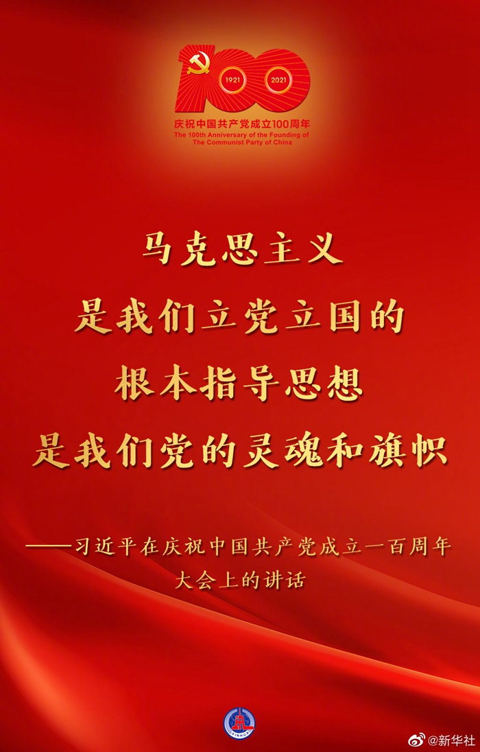 习近平说,以史为鉴、开创未来,必须继续推进马克思主义中国化。马克思主义是我们立党立国的根本指导思想,是我们党的灵魂和旗帜。中国共产党坚持马克思主义基本原理,坚持实事求是,从中国实际出发,洞察时代大势,把握历史主动,进行艰辛探索,不断推进马克思主义中国化时代化,指导中国人民不断推进伟大社会革命。中国共产党为什么能,中国特色社会主义为什么好,归根到底是因为马克思主义行!