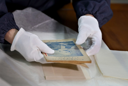 2020年6月23日,中共一大会址纪念馆藏品保管部的工作人员展示张人亚和他的亲属保护的《共产党宣言》中文全译本。新华社记者 刘颖 摄