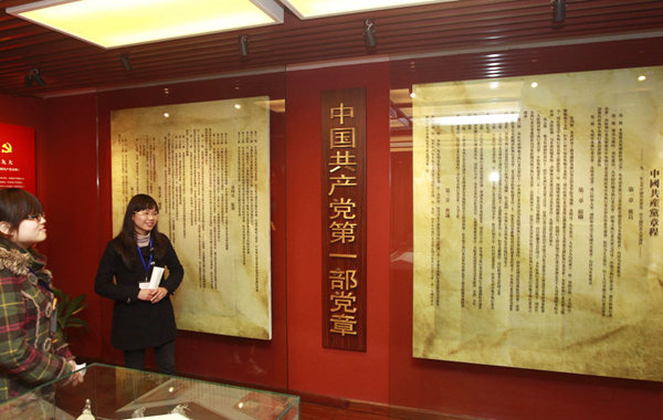 中共二大会址纪念馆党章历程厅内重点展示了中国共产党第一部党章(2016年摄)。新华社记者 裴鑫 摄