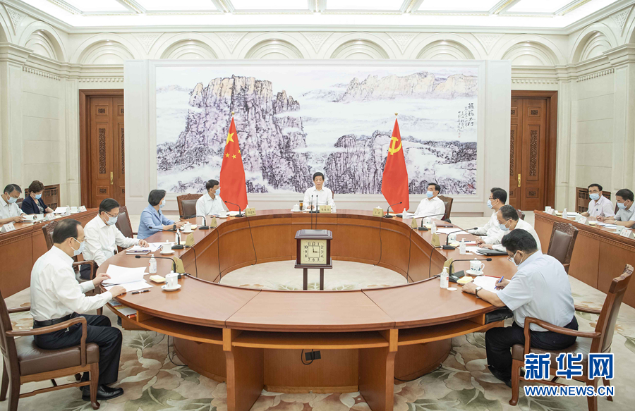 7月1日,中共全国人大常委会党组举行会议,学习贯彻习近平总书记在庆祝中国共产党成立100周年大会上的重要讲话精神。中共中央政治局常委、全国人大常委会委员长、党组书记栗战书主持会议并讲话。新华社记者 李涛 摄