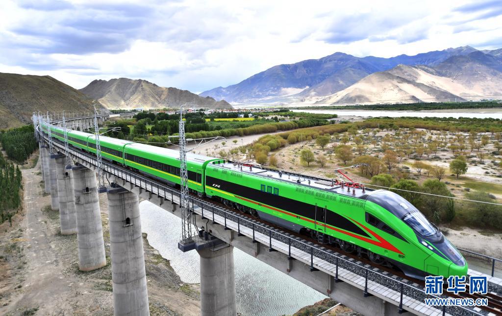 试运行的复兴号列车行驶在西藏山南市境内(6月16日摄)。新华社记者 觉果 摄