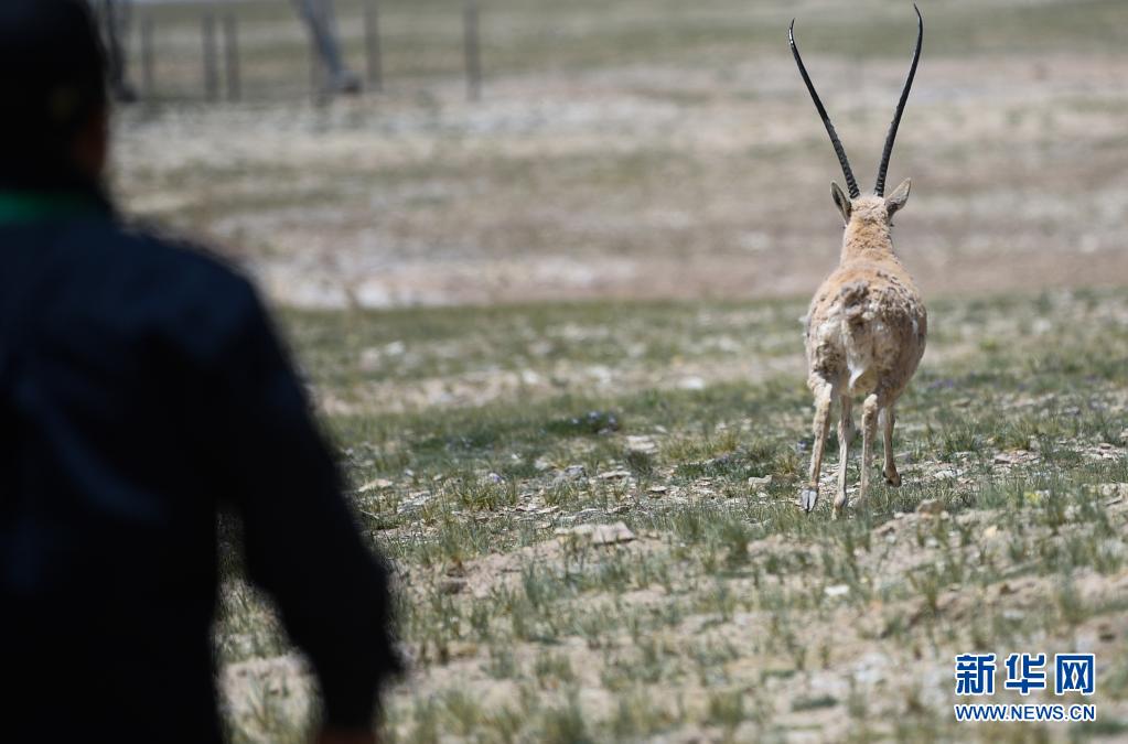 7月7日,在可可西里索南达杰保护站野生动物救助中心,一只藏羚羊被放归大自然。当日,在可可西里索南达杰保护站野生动物救助中心,三公两母共五只人工救助的藏羚羊被放归大自然。新华社记者 张龙 摄