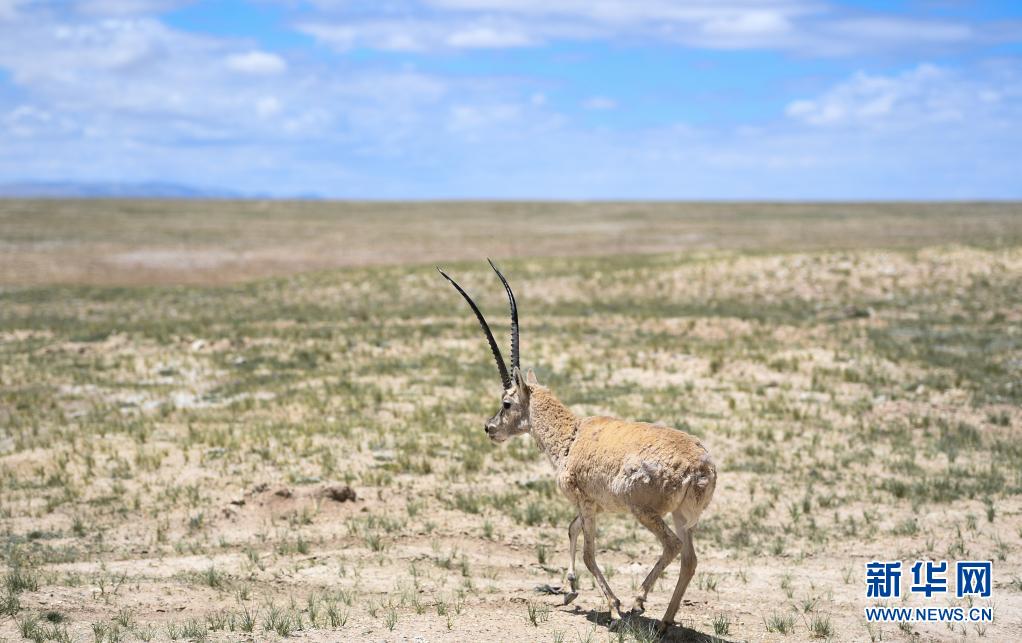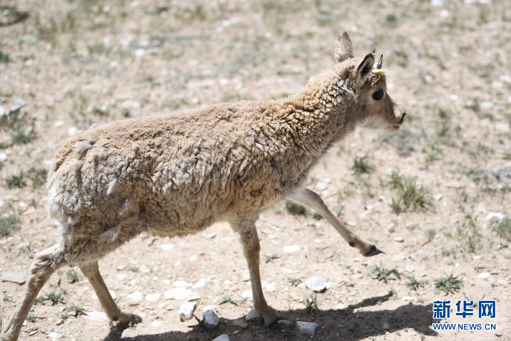这是7月7日在可可西里索南达杰保护站野生动物救助中心拍摄的一只被放归自然的藏羚羊。新华社记者 张龙 摄
