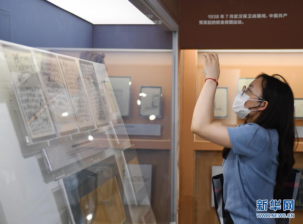 7月7日,观众在中国人民抗日战争纪念馆参观“中流砥柱——中国共产党抗战文物专题展”。新华社记者 张晨霖 摄