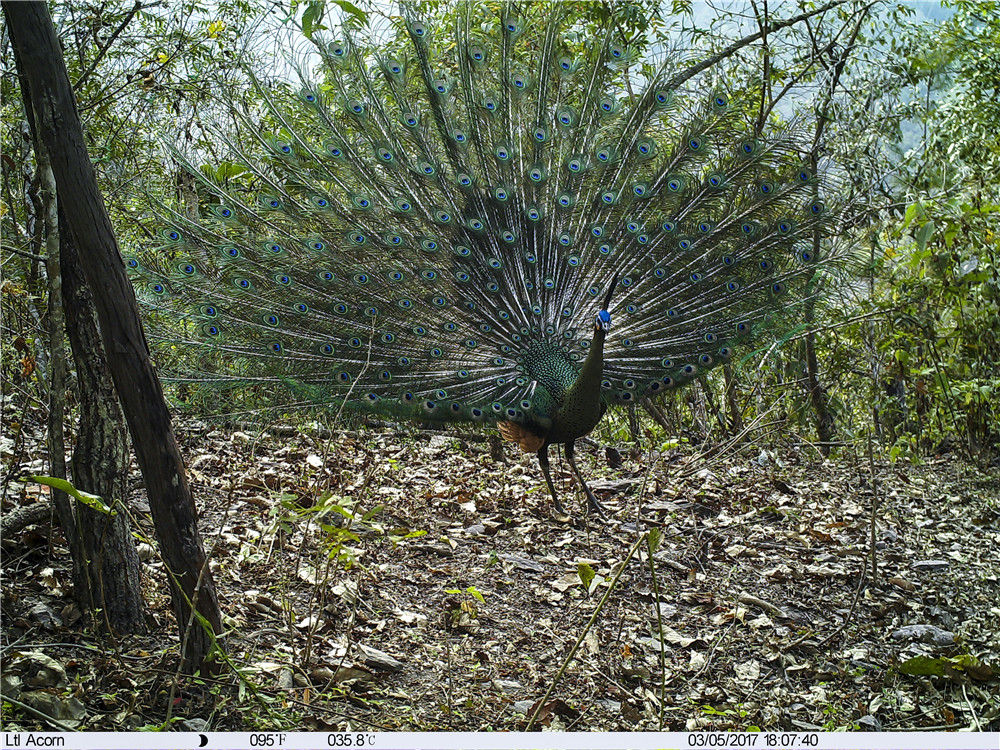 红外相机拍摄到的绿孔雀(资料照片)。新华社发(云南省林业和草原局供图)