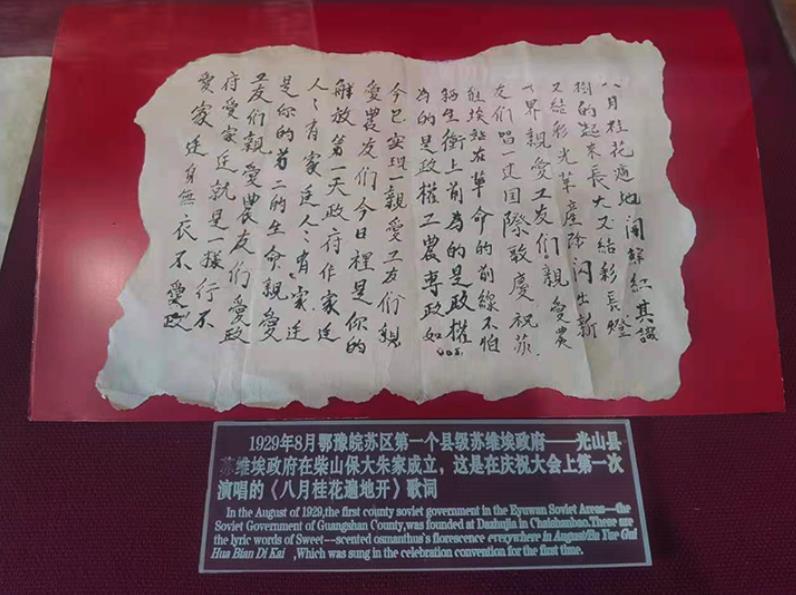 鄂豫皖苏区首府革命博物馆副馆长戴璐璐介绍说,1932年传达到鄂豫皖革命根据地之后,苏维埃政府让秘书用毛笔将全文书写在方湾村的一面青砖墙上,进行广泛宣传。