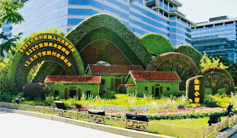 建党百年之际,在北京长安街沿线,10组献礼中国共产党成立100周年的立体花坛亮相,生动展示中国共产党的奋斗历程和伟大成就。图为“全面小康”主题花坛。人民视觉 方淑媛/摄(求是网)