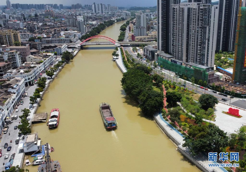 这是7月15日拍摄的广东省江门市江海区下沙公园一角(无人机照片)。新华社记者 殷家捷 摄