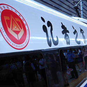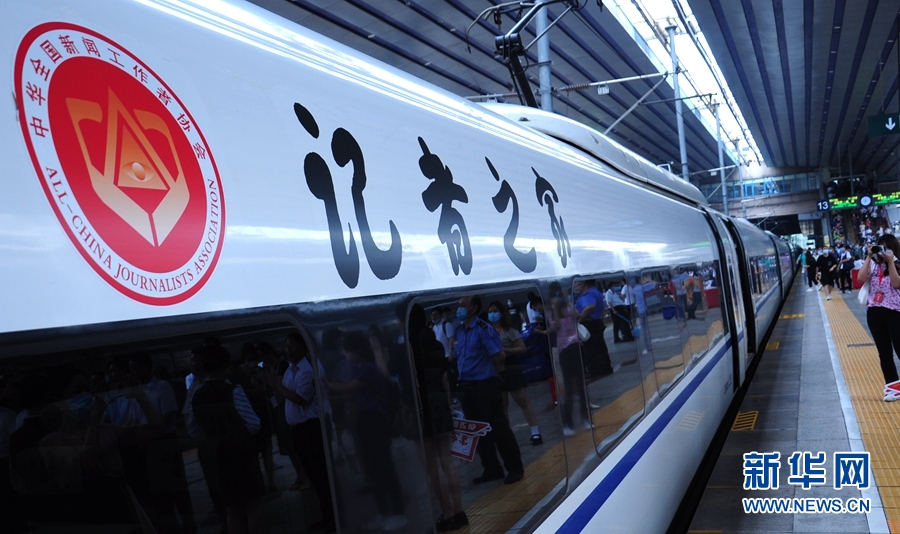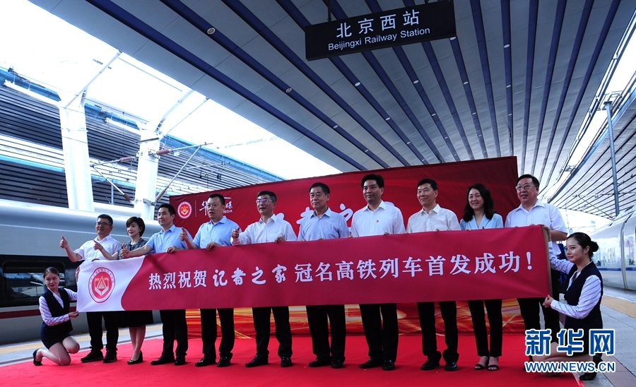 7月16日,“记者之家”冠名高铁列车在北京西站举行了首发仪式。新华网 张朝华 摄