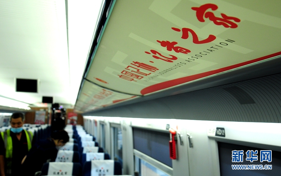 “记者之家”冠名高铁列车内部场景。新华网 张朝华 摄