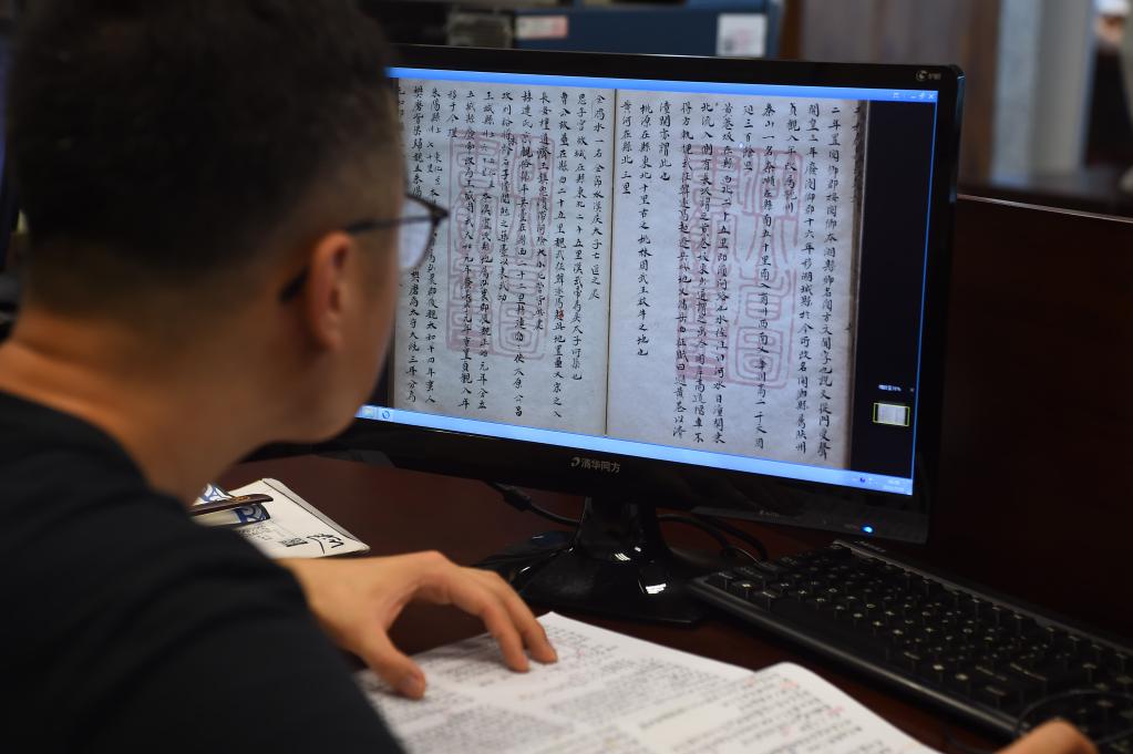 参观者在湖北省图书馆查阅电子家谱。新华社记者万芃琦摄