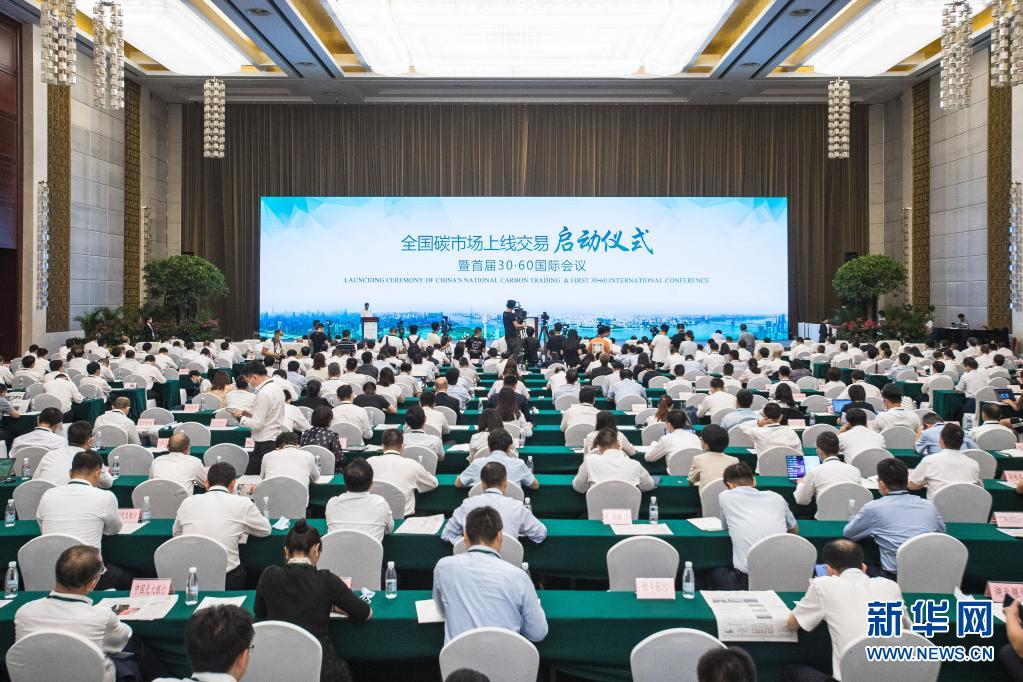 7月16日,全国碳市场上线交易启动仪式暨中国碳交易市场论坛在上海环境能源交易所举行。新华社记者 程思琪 摄