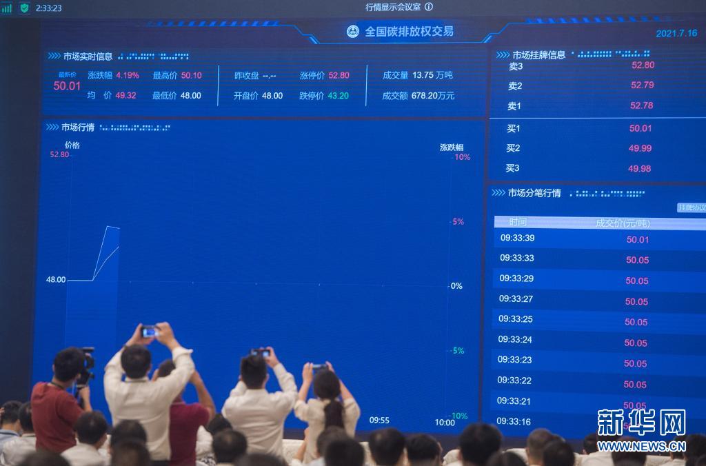 7月16日在武汉拍摄的全国碳排放权交易实时信息画面。新华社记者 肖艺九 摄