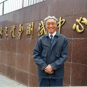 上世纪90年代,陆元九在北京惯导测试中心调研时在门前留影。新华社发(中国航天科技集团供图)