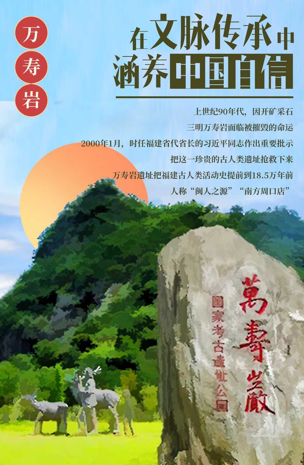 在“一炮炸掉”还是“原地保护”的抉择中,时任福建省代省长的习近平同志作出的批示一锤定音,留住了这一远古人类的遗迹。后续考古研究发现,万寿岩遗址把福建古人类活动的历史提前到18.5万年前,因此被称为“闽人之源”。