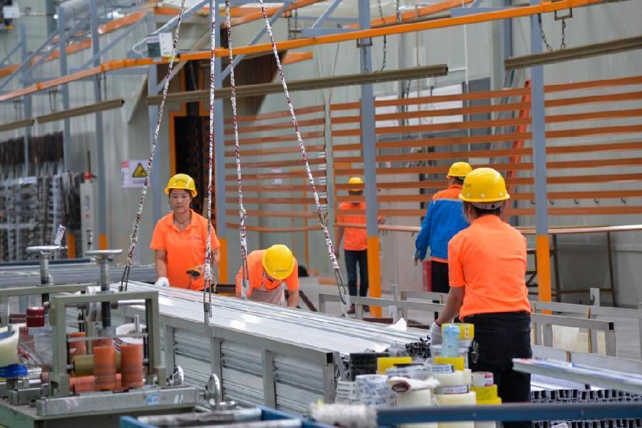 工人在贵州十九度铝业科技有限公司一处车间内作业(7月17日摄)。新华社记者徐钦摄