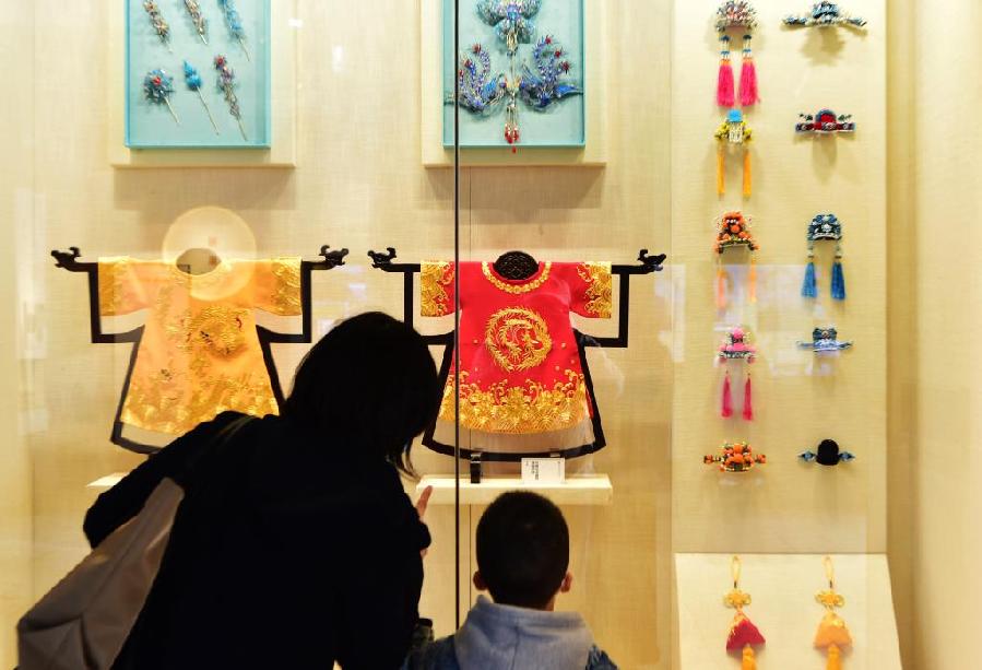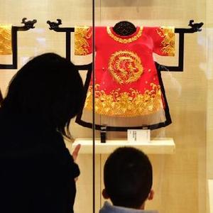 1月1日,观众在福州市非物质文化遗产展示馆观赏传统服饰。新华社记者魏培全摄