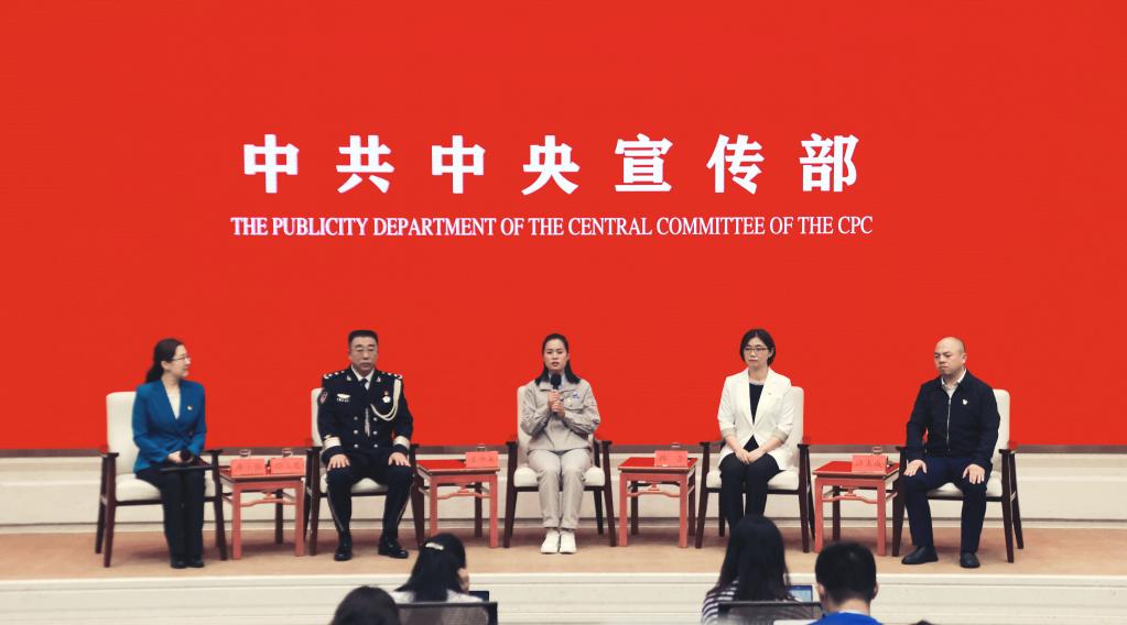 中共中央宣传部举行“传递榜样力量 争取新的光荣”中外记者见面会。新华社记者 潘旭摄