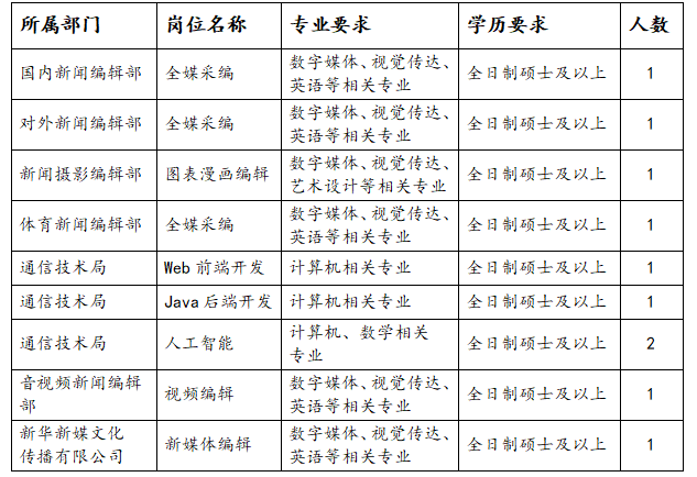 应聘者只可报考一个岗位,如有岗位调剂需求以新华社通知为准。