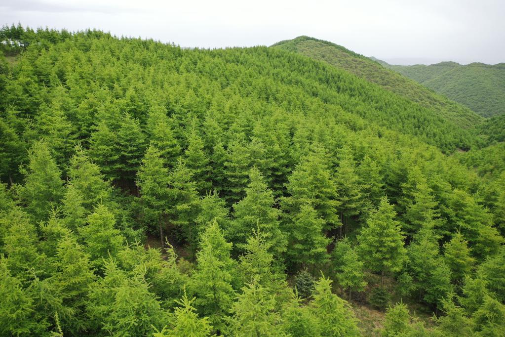 宁夏六盘山自然保护区内绿意盎然(无人机照片,6月2日摄)。新华社记者杨植森 摄