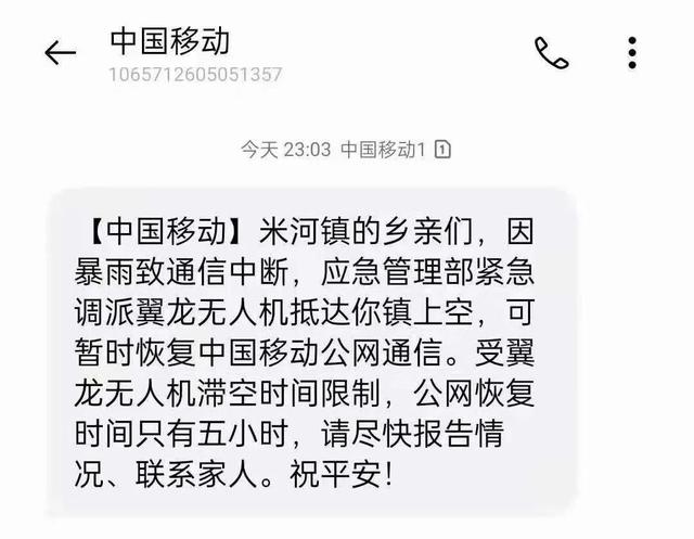 为了让灾区群众能打一个平安电话,应急管理部紧急调派翼龙无人机空中应急通信平台,跨区域长途飞行,穿越1200公里、历时4.5个小时抵达灾区,紧急覆盖网络信号,实现了约50平方公里范围长时稳定的连续移动信号覆盖,供受困群众通信报平安。
