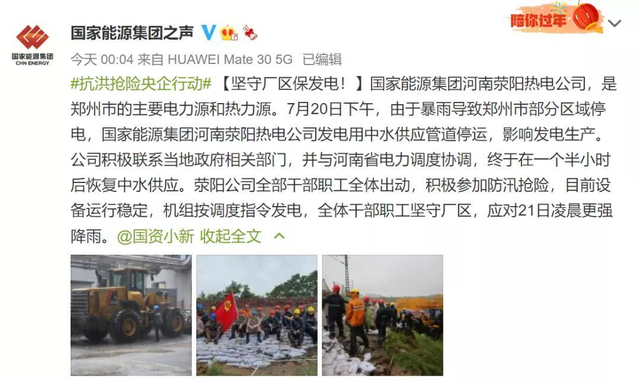 极端强降雨天气影响着正常的能源供应。