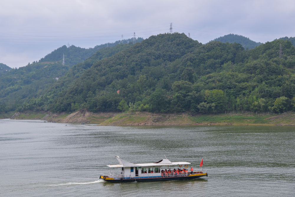 游客在陕西省安康市瀛湖风景区乘船游玩(7月24日摄)。新华社记者 徐钦 摄