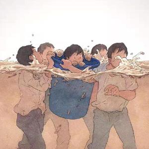 他都忘了自己不会游泳。