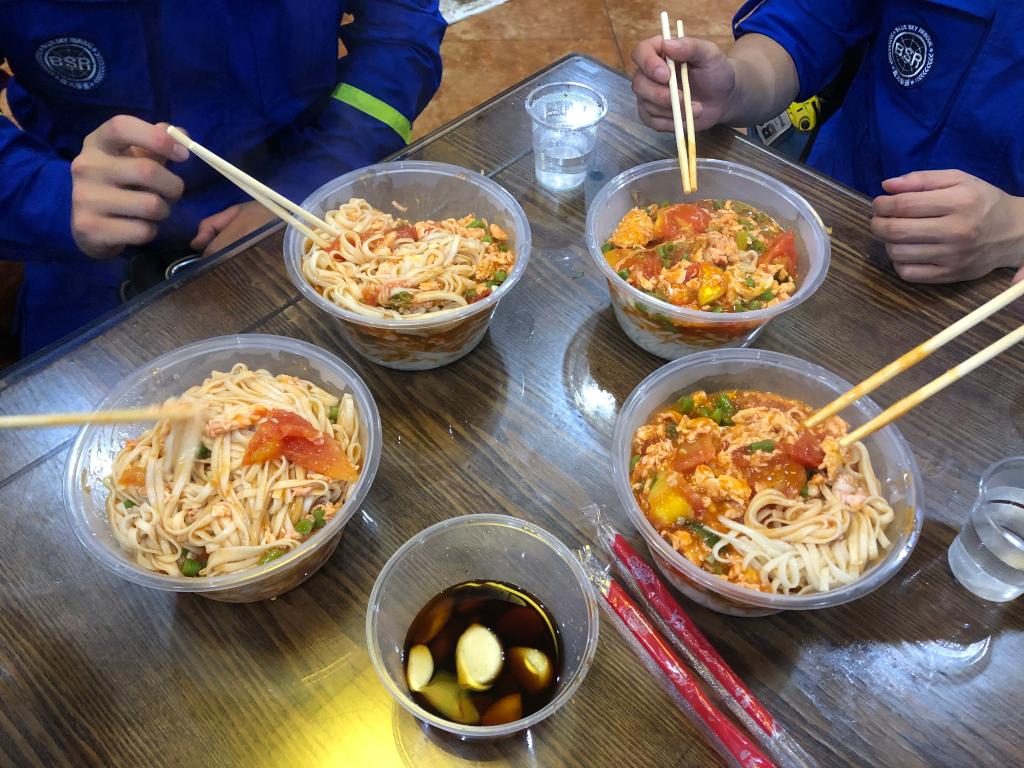 22日晚,余涛和队员们在郑州市中牟县参与救援,两天没有吃到一口热饭。“当时水、电、通信全部中断,很多店都不开门,一个酒店老板突然过来拉着去吃面,说必须去吃,吃饱了才有力气接着干。”余涛说。