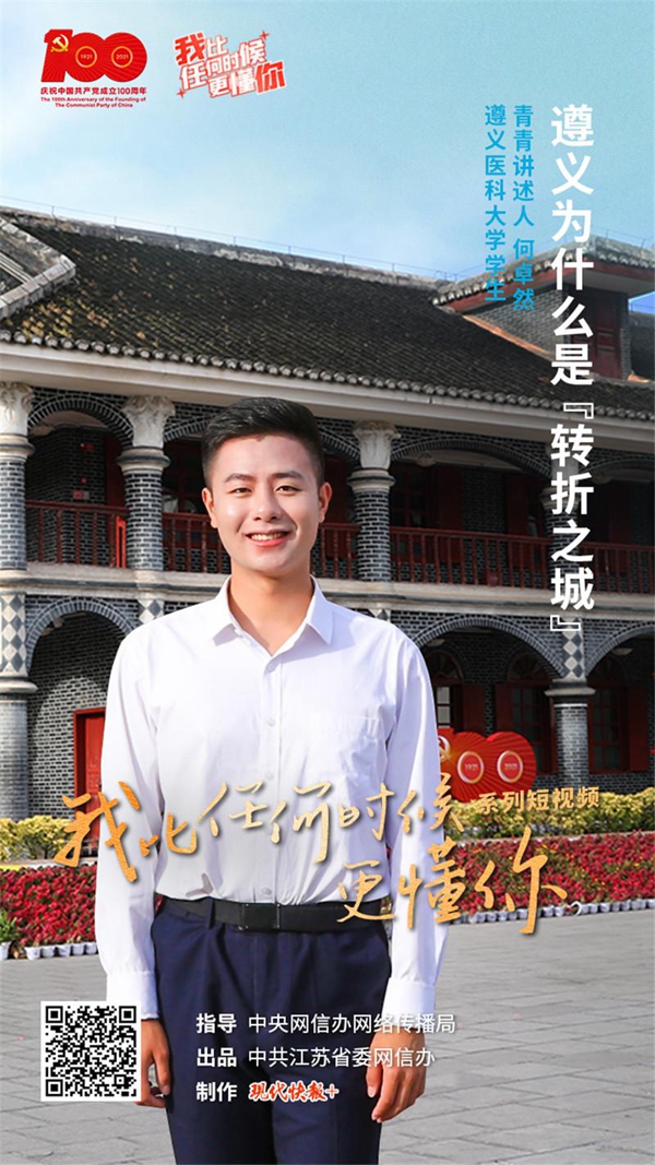 8月5日,“我比任何时候更懂你”系列短视频第12集《遵义为什么是“转折之城”》上线,本集青青讲述人是遵义医科大学学生何卓然,他为大家讲述了伟大转折背后的故事。