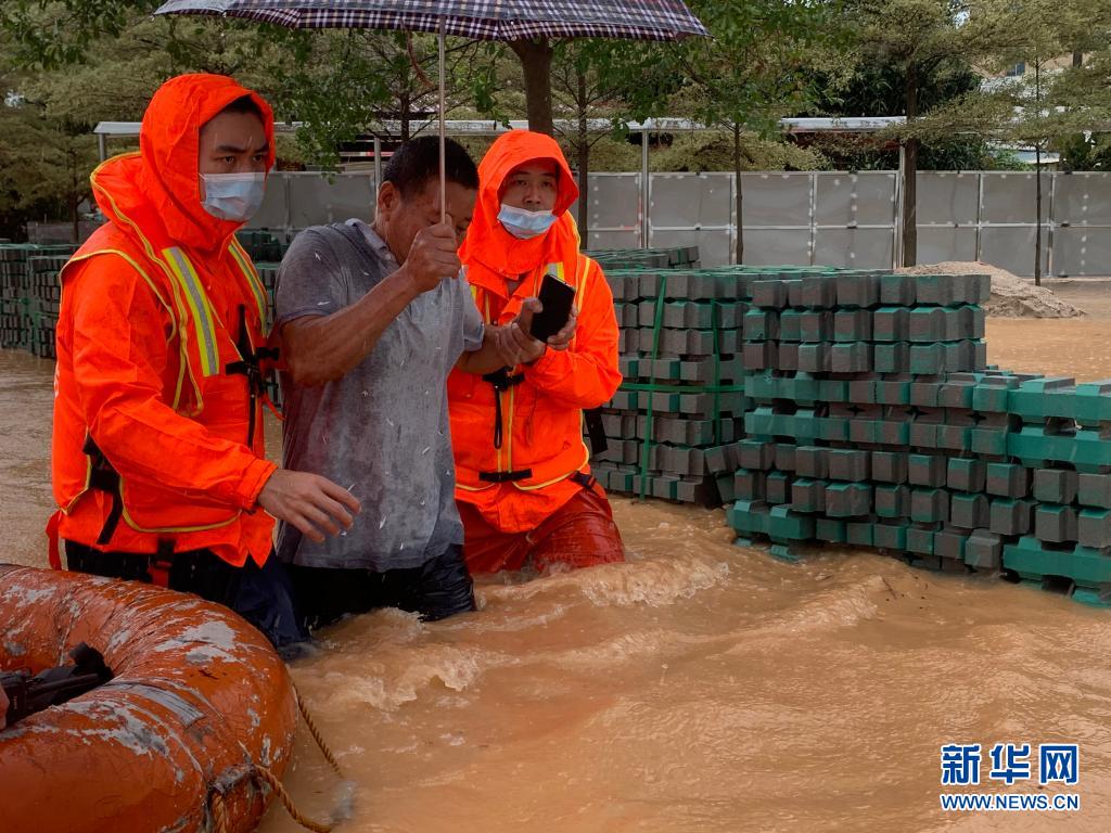 8月5日,在厦门市海沧区东瑶村,救援人员转移疏散群众。新华社发